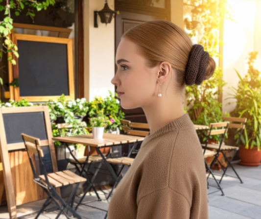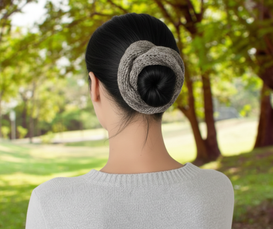 laine des hautes terres et alpaga - that is peruvian highland wool and alpaca.  Embodying a more rustic vibe, these knit scrunchies combine nature's beauty with soft elegant comfort.  They truly deserve to be called chouchous - French for scrunchies.  The soft, textured knit adds volume, while the adjustable elastic gives the perfect stretch for all-day comfort. Great for fine or thick hair these scrunchies provide both style and practicality.