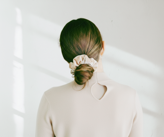 Our 100% silk velvet scrunchies offer luxurious, gentle care for your hair. The smooth, soft texture reduces friction, preventing breakage and creases while maintaining shine and health. The plush velvet finish provides a comfortable hold that won't tug or pull, making it perfect for all hair types. Plus, silk velvet is naturally hypoallergenic and breathable, ensuring both comfort and style in every wear.