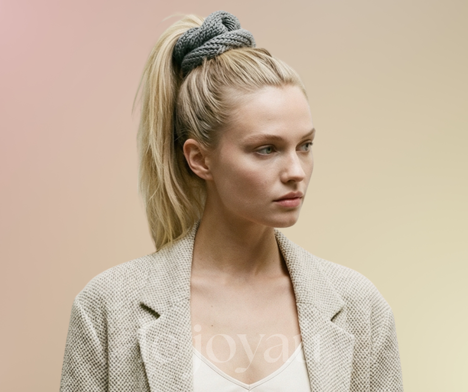 Our Highland + Alpaca Wool Scrunchie blends the warmth of Highland wool with the silky softness of alpaca for a texture that’s both plush and gentle on hair.